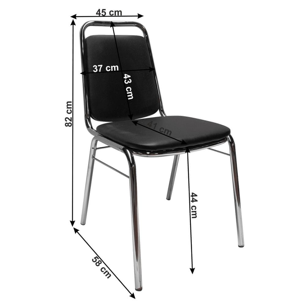 Iščete idealen stol za opremljanje pisarniških prostorov? V tem primeru priporočamo konferenčni stol ZEKI. Dimenzije stola so (ŠxGxV): 45×58×82 cm. Višina sedeža je 44 cm, globina sedeža 41 cm in širina sedeža 40 cm. Širina naslonjala je 37 cm, višina pa 43 cm. Stol je izdelan iz eko usnja v črni barvi. Kovinske noge v krom barvi zagotavljajo stabilno in trdno konstrukcijo. Stol je primeren za sejne in konferenčne sobe. Poleg tega ga je mogoče zlagati, tako da lahko stole enostavno zložite enega na drugega. Nosilnost stola je do 120 kg in se dostavi sestavljen.