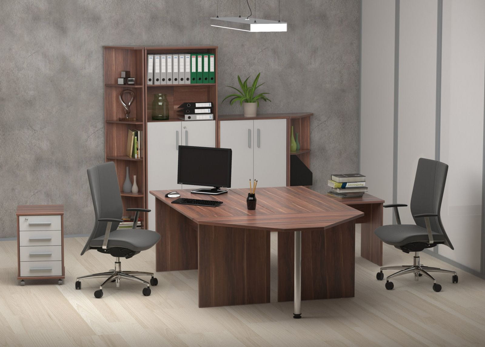 Vrtljivi pisarniški stol MORTON. Ima po višini nastavljiv naslon. Ima najlonsko podlago, sinhroni mehanizem, mehanizem za samotehtanje, podaljšek sedeža, mehka kolesa, nastavljive naslone za roke, vzglavnik in ledveno oporo. Barva črna.