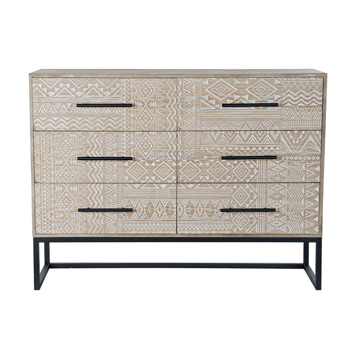 Če želite svojemu domu dodati pridih izvirnosti, vam bo to uspelo s komodo DKD Home Decor Fir Natural Black Metal MDF (107 × 35 × 80 cm).Barva: ČrnaNaravnaMaterial: KovinaEljaMDFPredali: Predali: 6 predalovPribližne dimenzije: 107 × 35 × 80 cm Celoten opis
