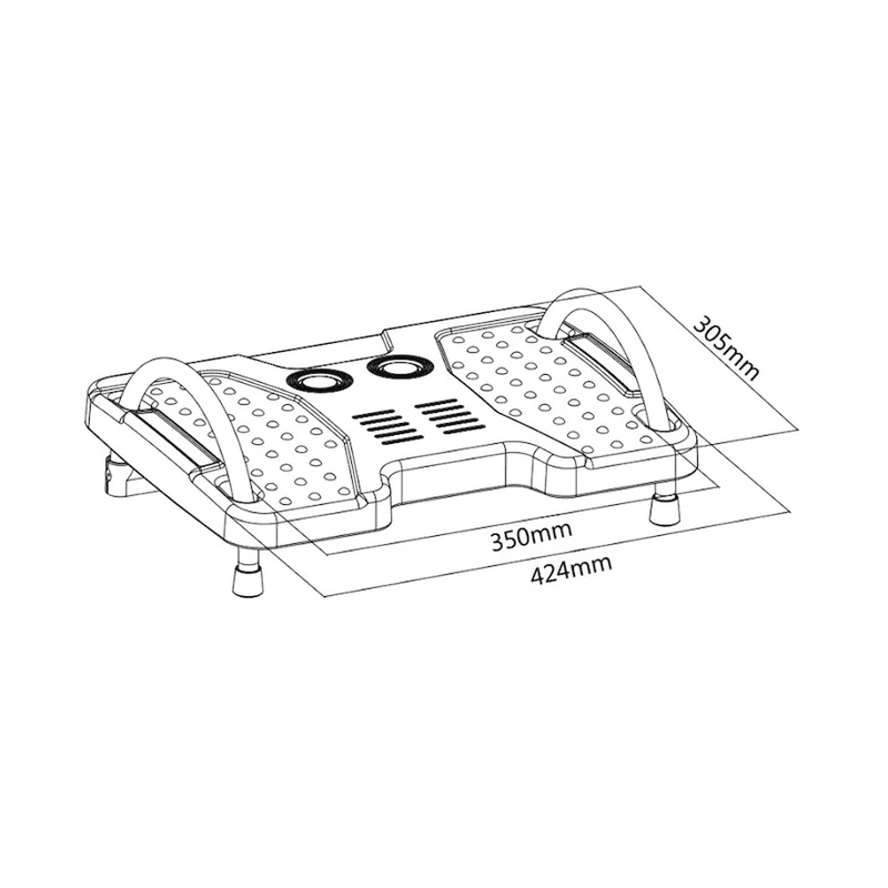 Visokokakovostna ergonomska opora za noge z možnostjo nastavitve nagiba, tako da lahko kadar koli prilagodimo kot lastnim željam in položaju. Oblazinjena površina razbremeni utrujena stopala in izboljša njihovo cirkulacijo. Uporaba naslonjala za noge pomaga zmanjšati bolečine v hrbtu, napetost mišic in izboljša cirkulacijo pri dolgotrajnem sedenju, npr. pred računalnikom ali v pisarni. Masažne blazinice pomagajo tudi pri zmanjševanju stresa in sprostitvi telesa.