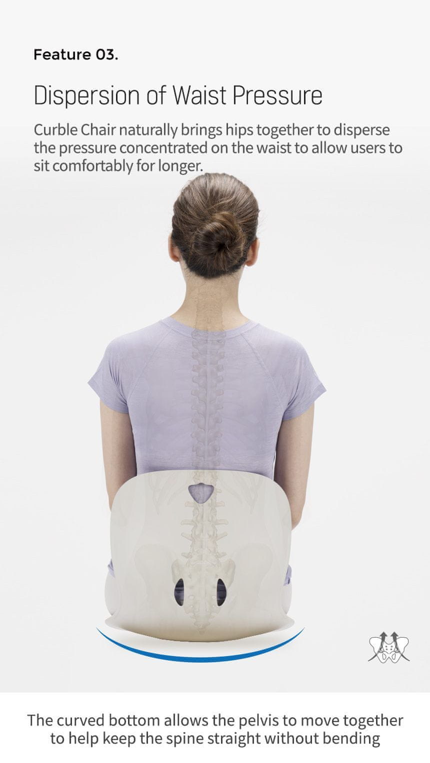 Naslonjalo za hrbet za pravilno držo pri sedenju. Edinstven mehanizem z vzvodnim učinkom pomaga zmanjšati napetost v hrbtu in ohranja naravno krivino v ledvenem predelu. Naslonjalo tako zmanjšuje napetost hrbtenice ter zagotavlja pravilno in udobno dolgotrajno sedenje. Poleg tega za njegovo uporabo ni potrebna montaža, naslonjalo samo namestite na stol približno 10 cm od naslona in udobno sedite.