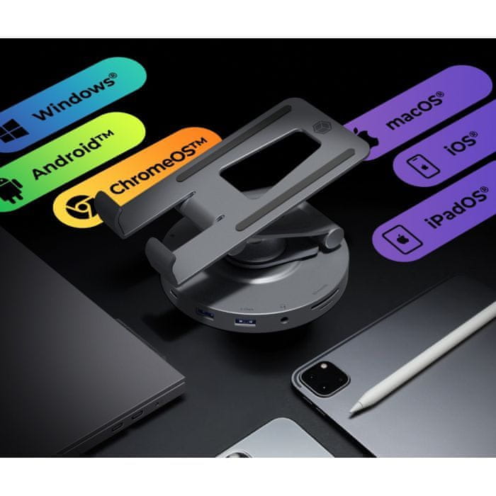 Uživajte v udobnem delovnem okolju z zmogljivostjo vaše tablice ali pametnega telefona. Nosilec podpira naprave do velikosti 11 palcev in omogoča nastavljanje naklona, da ga lahko prilagodite svojim potrebam. Zaradi širokih in zmogljivih možnosti povezljivosti lahko na nosilec povežete zunanje zaslone ter svojo tablico ali pametni telefon uporabljate kot popolnoma funkcionalen računalnik. Uživajte v udobju večzaslonskega delovnega okolja. Model IB-TH100-DK je idealno središče za hibridno delovno okolje. Prek HDMI 2.0 priključka lahko povežete pametni telefon ali tablico z dodatnim monitorjem v ločljivosti do 4K pri 60 Hz. Zaradi izjemno kompaktne oblike je nosilec zelo prenosljiv in vam omogoča svobodo dela kjerkoli, hkrati pa ponuja izkušnjo podobno delu na prenosniku.