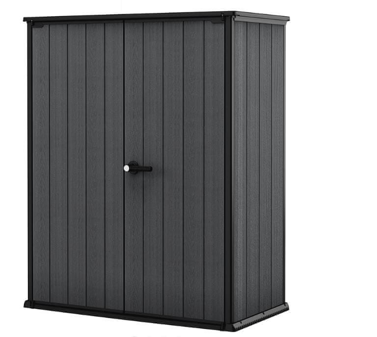 Prostorna omara Cortina Alto je idealna rešitev za shranjevanje širokega nabora orodja, vrtnega pohištva, blazin in drugih pripomočkov. Izdelana je iz naprednega materiala EVOTECH, ki z elegantno teksturo posnema videz naravnega lesa, hkrati pa nudi vzdržljivost umetne mase. Omara ima ojačane stene in stabilno konstrukcijo, ki jo je mogoče zakleniti z obešanko za maksimalno varnost. Velika prednost so priložene 2 police z nosilnostjo 16 kg, ki skupaj s kavlji omogočajo popolno organizacijo vaših predmetov v vsakem vremenu.
