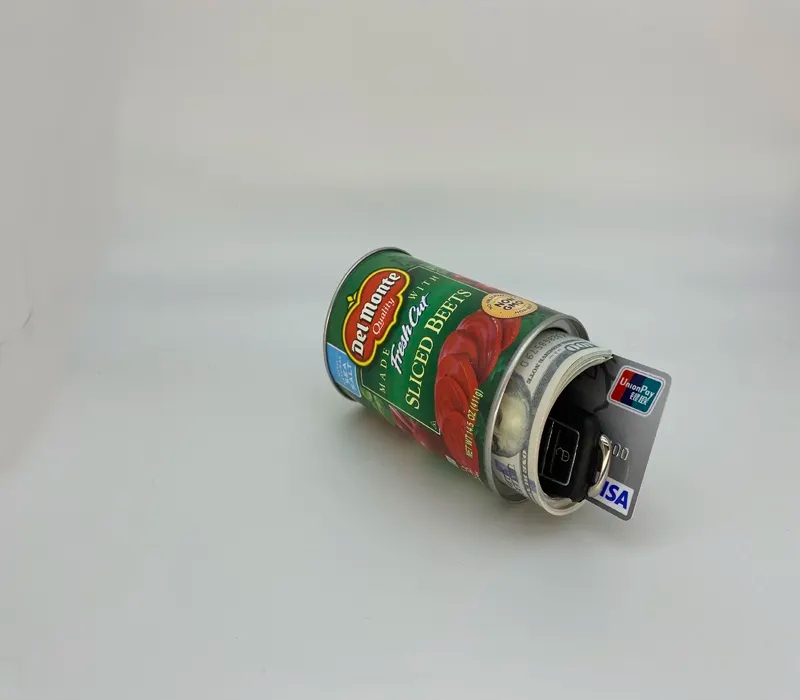 Pločevinasti sef je popolnoma prikrit sef za odvračanje pozornosti, ki se bo odlično zlil z vašo kuhinjo, omaro ali shrambo. Od zunaj je videti kot tradicionalna konzerva koruze ali paradižnika, v notranjosti pa skriva varno skrivališče za vaše dragocenosti. Vanj lahko shranite gotovino, nakit ali ključe, ne da bi jih razkrili nepooblaščenim osebam.