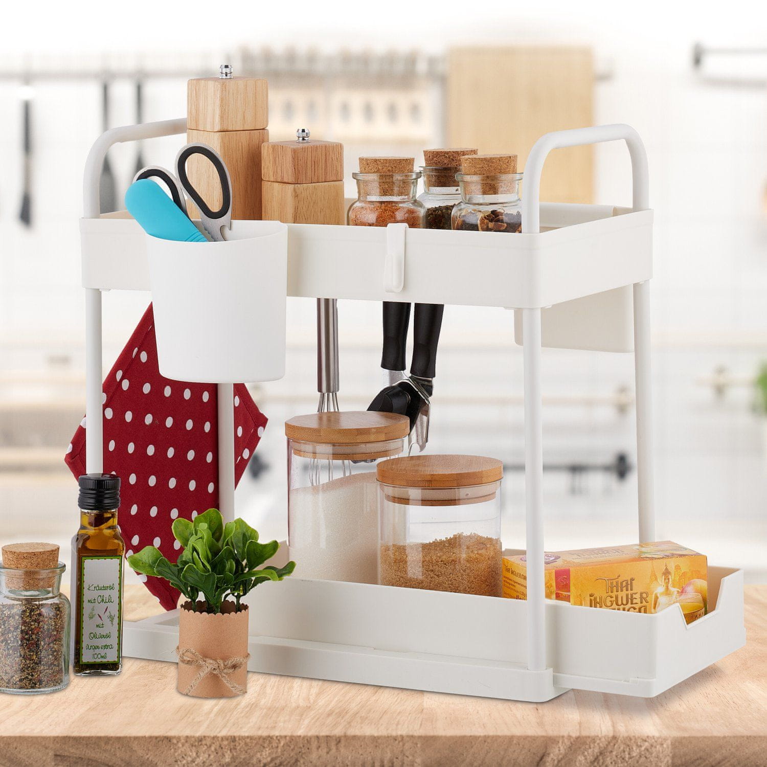 Optimizirajte svoj kuhinjski prostor s tem vsestranskim kuhinjskim organizatorjem z drsnimi policami za enostaven dostop in dovolj prostora za shranjevanje. Popoln za osnovne omare, shrambe in drugo.