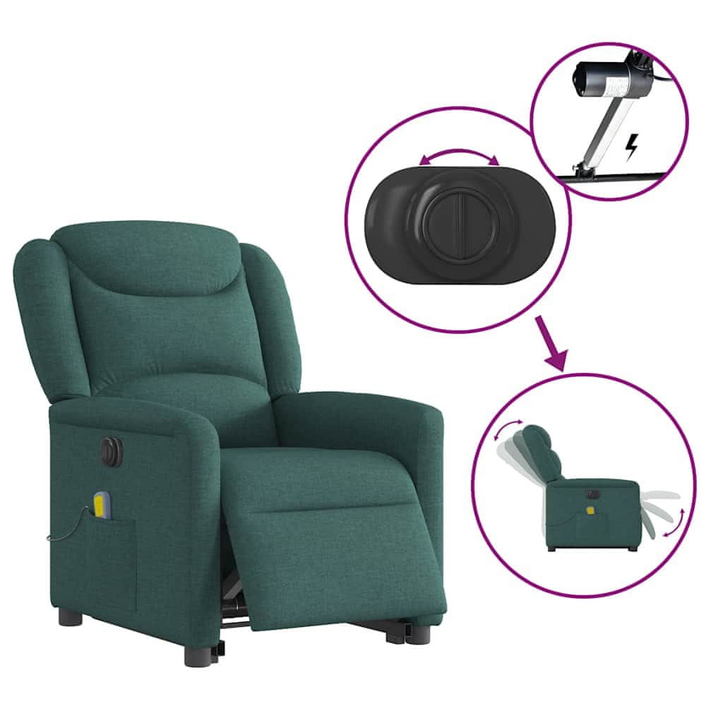 Vidaxl Električni masažni naslanjač s funkcijo vstajanja temno zelen