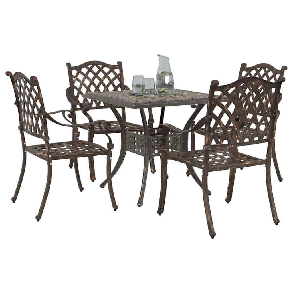 Vidaxl Komplet vrtne mize 5 pcs Bronasta Lit aluminij