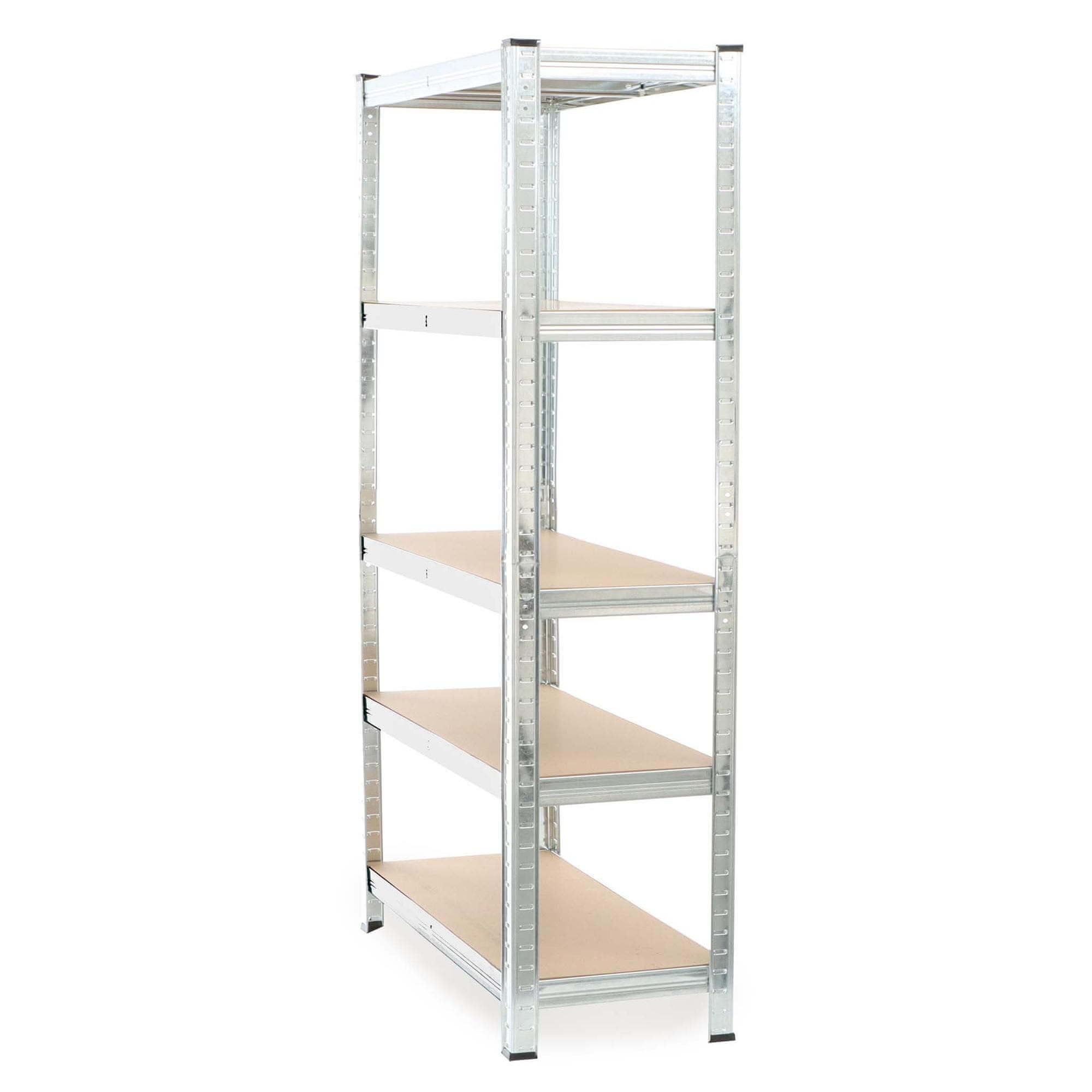 Regal Wiltec za težke obremenitve vam omogoča, da hitro naredite red v delavnici, kleti, skladišču in garaži. Regal je skupnih dimenzij 180 × 90 × 40 cm (DxŠxV) in je opremljen s petimi policami. To so MDF lesno vlaknene plošče z nosilnostjo 175 kg na nivo, kar pomeni skupno nosilnost 875 kg.