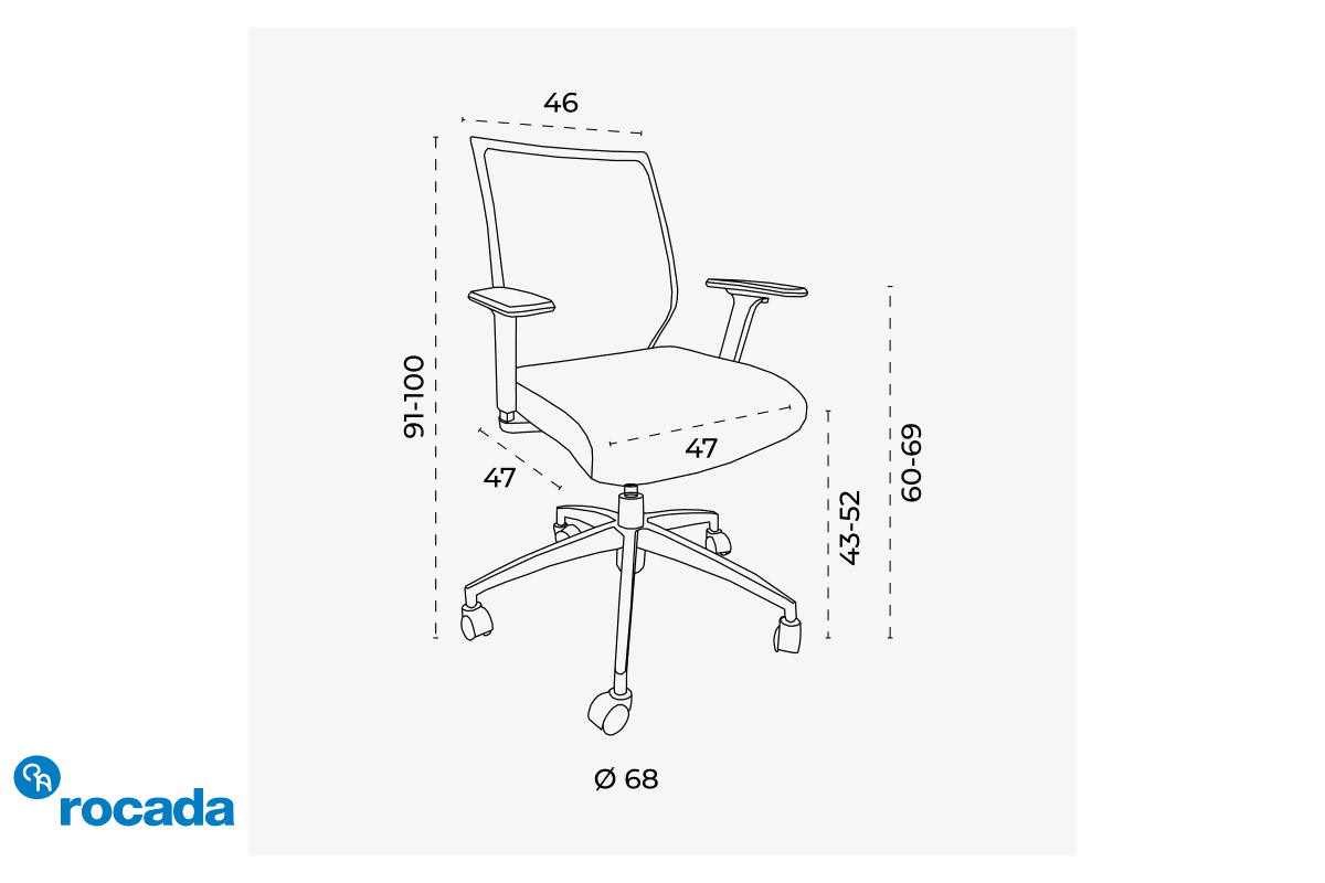 rocada RD-907 – Ergoline pisarniški stol španske blagovne znamke ROCADA omogoča udobno 8-urno sedenje z zračnim hrbtiščem in prilagodljivim naklonom.