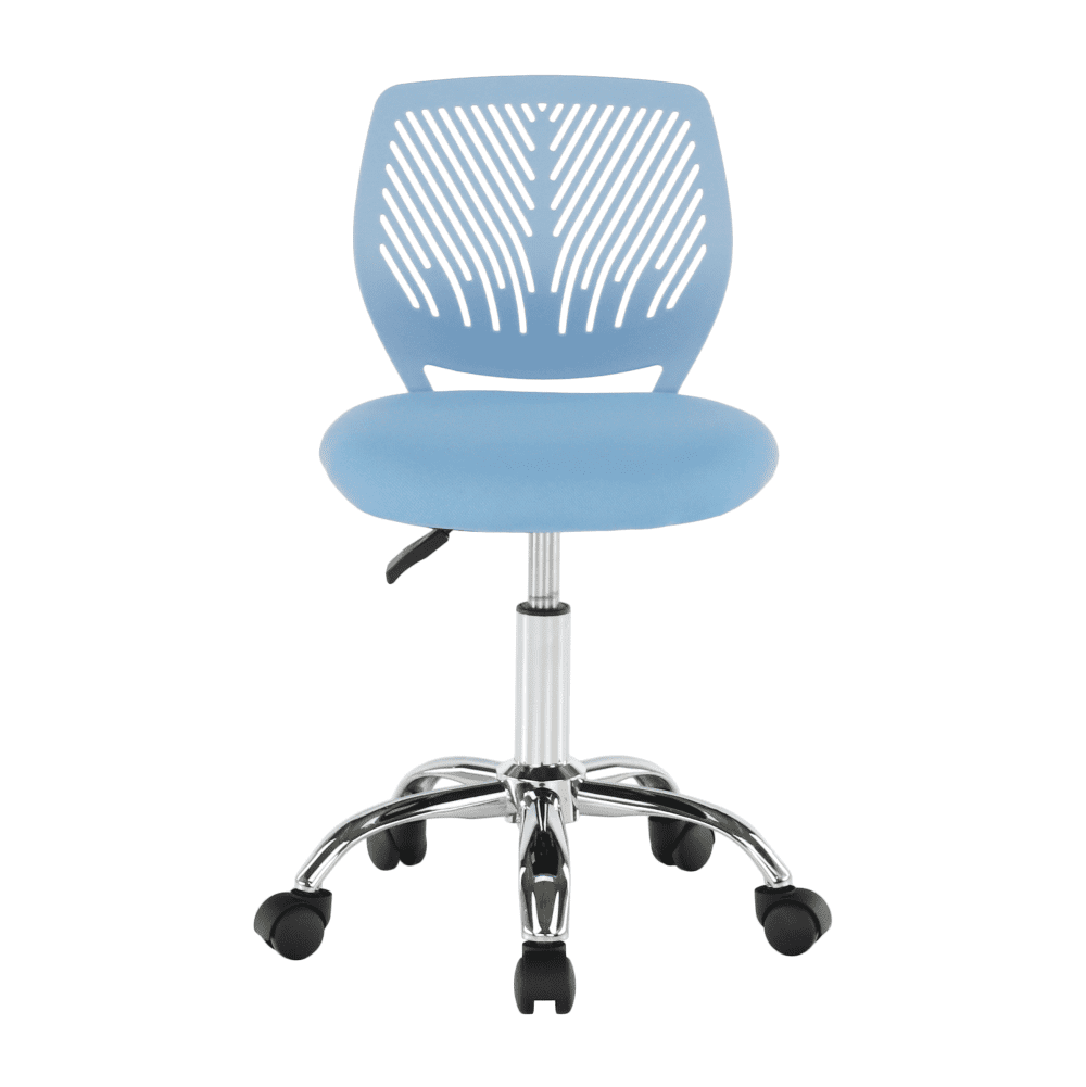 Material: poliester / kovina Odpornost tkanine proti obrabi po testu Martindale: 100 000 odrgnin Barva: modra / krom Dimenzije (ŠxGxV): 40×40×74,5–86,5 cm Nastavljiva višina sedeža: 43–55 cm Globina sedeža: 38 cm Širina sedeža: 40 cm Višina naslona: 31 cm Širina naslonjala: 35,5 cm Nosilnost: 80 Celoten opis