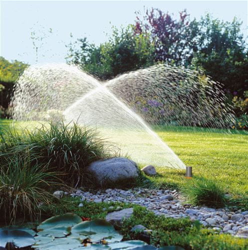 Gardena T 200 (8203)Vgrezni turbinski zalivalnik Gardena T 200 je sestavni del Gardena Sprinkler sistema in je primeren za namakanje površin do 200 m². Lahko se ga kombinira z dodatnima turbinskima zalivalnikoma T 100 (8201) in T 380 (8205), ter pravokotnim zalivalnikom OS 140 (8220). Njegov domet je nastavljiv med 5 in 8 metri. Namakalni sektor se na glavi lahko nastavi brezstopenjsko med 25 in 360°. Namaka lahko od majhnega področja pa do polnega kroga. Ima spominsko funkcijo, s katero se sam vrne v nastavljeno področje. K prožnosti namakanja pripomorejo štiri šobe z različnimi pretoki, ki so izbrani glede na velikost namakalnega sektorja – to je pomembno za enakomerno namakanje z več zalivalniki in različno nastavljenimi zalivalnimi sektorji. Vgrajen filter umazanije skrbi za nemoteno delovanje. Turbinski pogon je zaščiten pred peskom. Pred zmrzaljo ga lahko zavarujete z namestitvijo izpustnega ventila (2760). Ima priključek z notranjim navojem 1/2". |