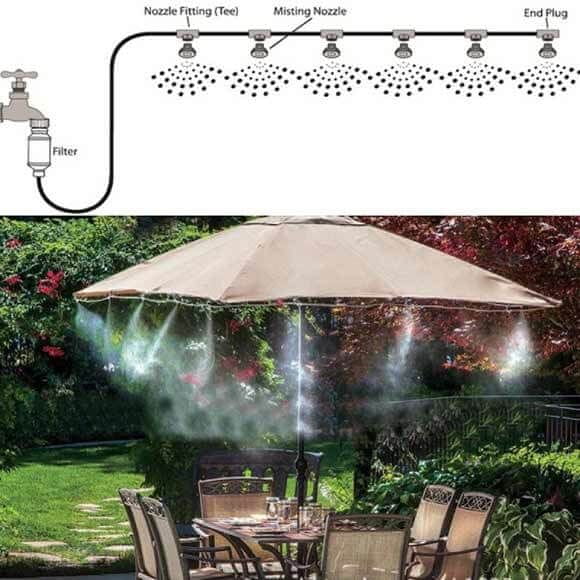 Sistem za hlajenje z vodno meglo lahko namestite na različne zunanje površine, kot so terase, vrtovi, površine okoli bazena in vodnega parka, terase v restavracijah in barih, rastlinjaki in mnogo več. Sistem lahko uporabite tudi kot razpršilno dezinfekcijsko sredstvo ali kot orodje za dodajanje vlage v zraku.
