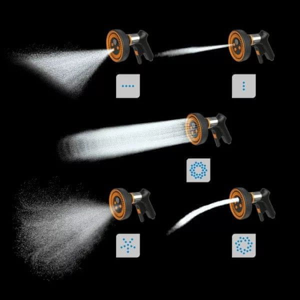Det justerbara, utbytbara huvudet med SoftGrip™-beläggning låter dig välja rätt vattenstråle som passar dina behov – ett milt duggregn, spray, platt stråle, bevattning eller punktstråle.