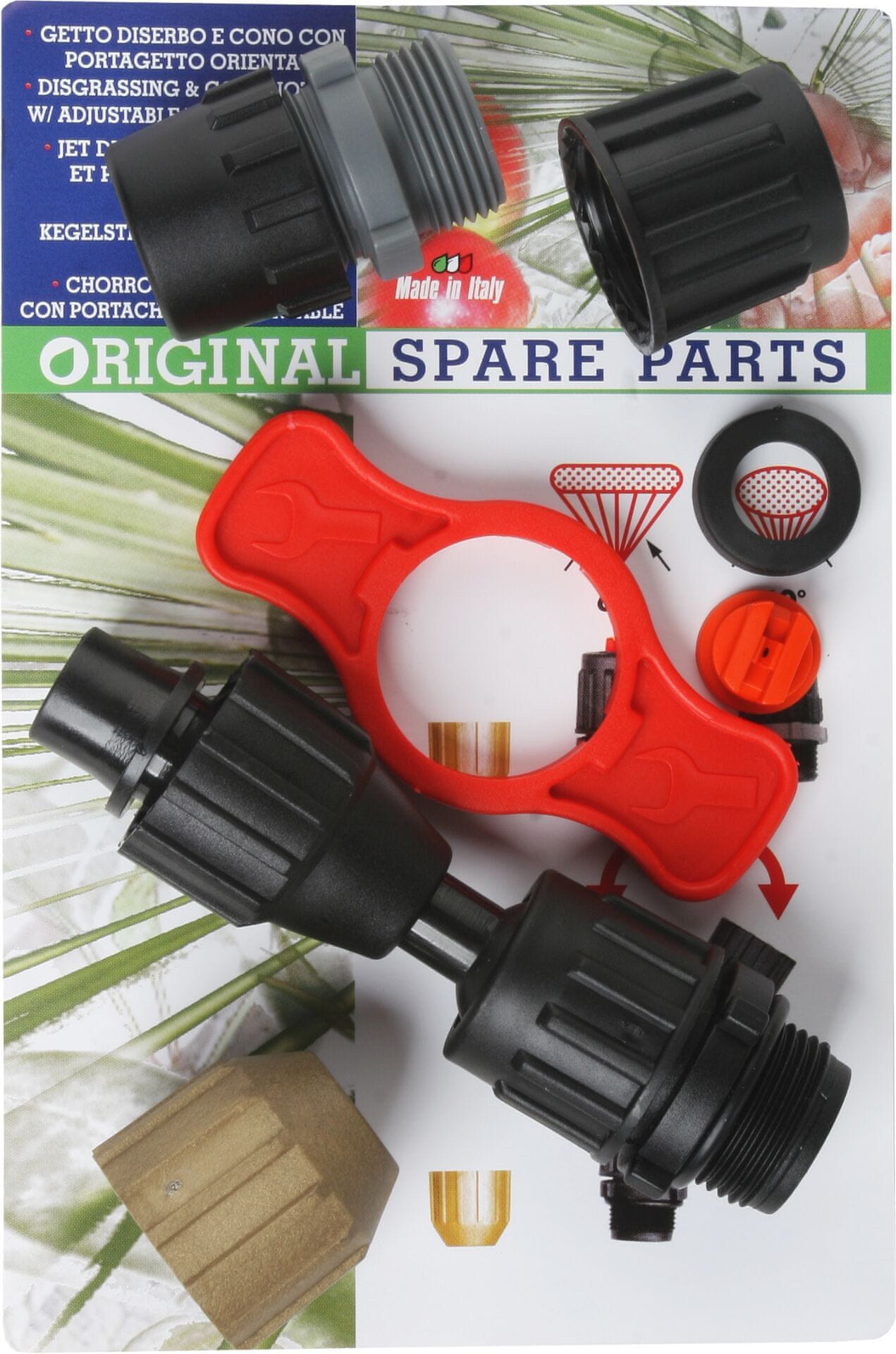 Komplet vključuje standardno krožno šobo, šobo z ravno režo, gibljiv spoj za odklon šobe do 60° in ključ za menjavo šobe.