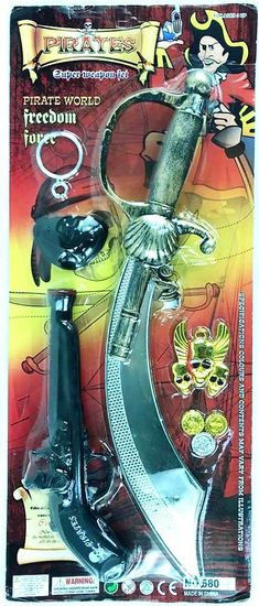 Piratski komplet s sabljo, napero in dodatki. Celoten opis