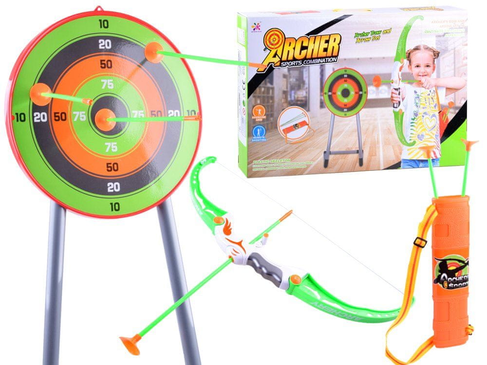 Set loka, tarče, tulca in puščic za streljanje je namenjen vsem otrokom, ki jih zanima ta šport. Igrača je v celoti izdelana iz trdne plastike in bo poskrbela za veliko razburljive zabave. Popolnoma varen komplet ima gumijaste zaključke. Lok ima napeto gumijasto tetivo, puščice pa so opremljene s silikonskimi priseski.