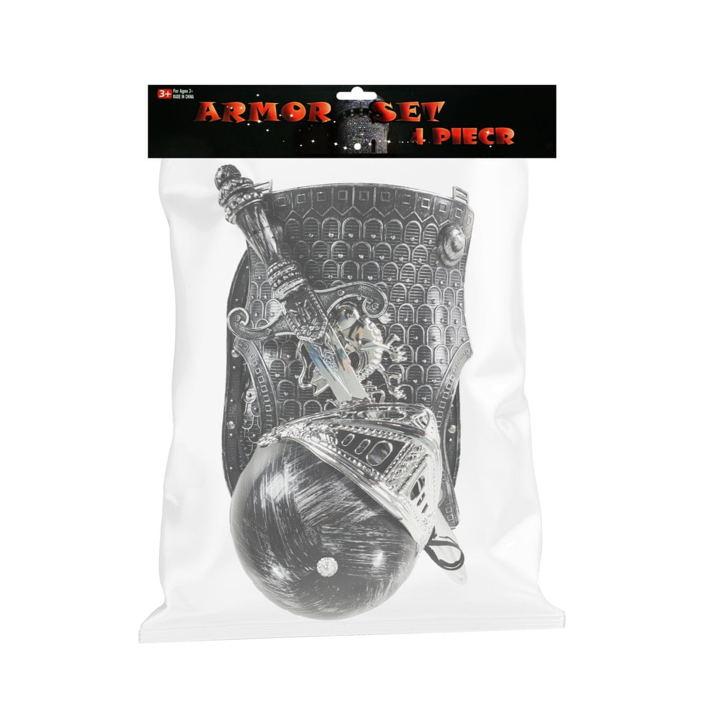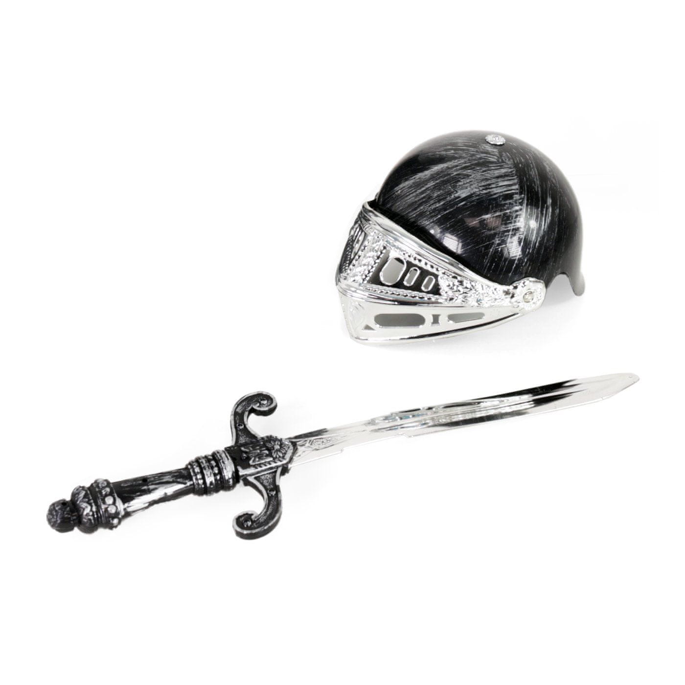Zgrabi meč, si nadeni ščit in čelado ter se podaj v viteški boj! Ta komplet vključuje srebrni meč, zaščitni ščit z zmajevim grbom, čelado s pokrovom in viteški jopič. Vse je narejeno iz PVC. Meč je dolg približno 49 cm.