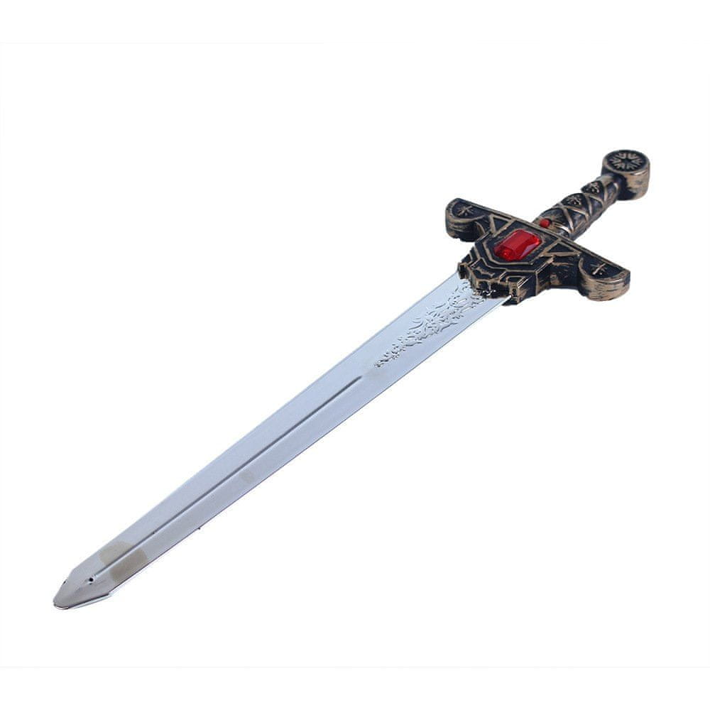 Se boste pomerili v dvoboju? Potem je ta meč kot nalašč za vas. Meč z bronastim ročajem in srebrnim rezilom je dolg približno 55 cm in oddaja zvoke. Vključuje 3 baterije LR44.