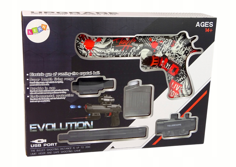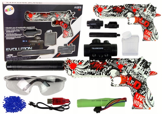 Pištola je na baterije, kar omogoča daljšo in bolj razburljivo zabavo. Za dodaten realizem in učinek komplet vključuje tudi dušilec, zaradi česar so streli bolj realistični in pritegnejo pozornost.