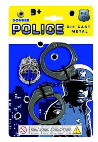 Kovinske lisice in policijska značka – komplet blagovne znamke Gonher.