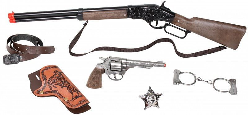 Večina fantov bi rada vsaj za trenutek postala možje zakona – šerif na Divjem zahodu. Komplet Gonher vsebuje vse, kar bi morda potrebovali, da bi postali možje zakona – puško, kovinski revolver s tokom, lisice, značko, toku. Komplet je popolnoma varen, izdelan iz certificiranih materialov.