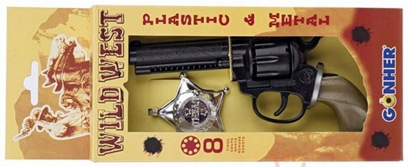 Večina fantov bi rada vsaj za nekaj časa postala možje zakona – šerif na Divjem zahodu, ki lovi kriminalce. Komplet Gonher vsebuje vse, kar bi morda potrebovali, da bi postali teksaški ranger – kovinski revolver in značko. Komplet je popolnoma varen, izdelan iz certificiranih materialov.