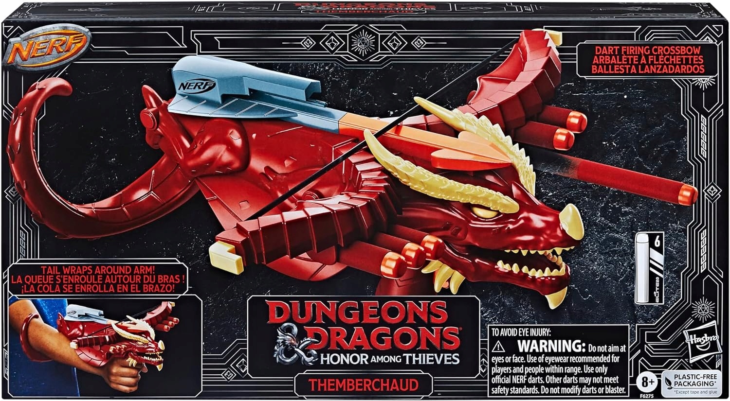 Nerf Dungeons and Dragons Themberchaud je edinstvena mešanica igranja vlog in resnične akcije na prostem. Navdihnjen z rdečim zmajem iz filma Dungeons and Dragons: Honor Among Thieves in legendarno igro igranja vlog, vas ta samostrel popelje na čarobno potovanje, polno pustolovščin in izzivov. Samostrel vključuje 6 penastih puščic Nerf Elite, poseben predal pod zmajevimi krili pa omogoča shranjevanje rezervnih puščic za hitro polnjenje. Ovijte si prilagodljiv rep rdečega zmaja okoli roke in se počutite kot pravi pustolovec. Povlecite tetivo nazaj, jo pritrdite, napolnite puščico in nato pritisnite sprožilec, da izstrelite puščico.