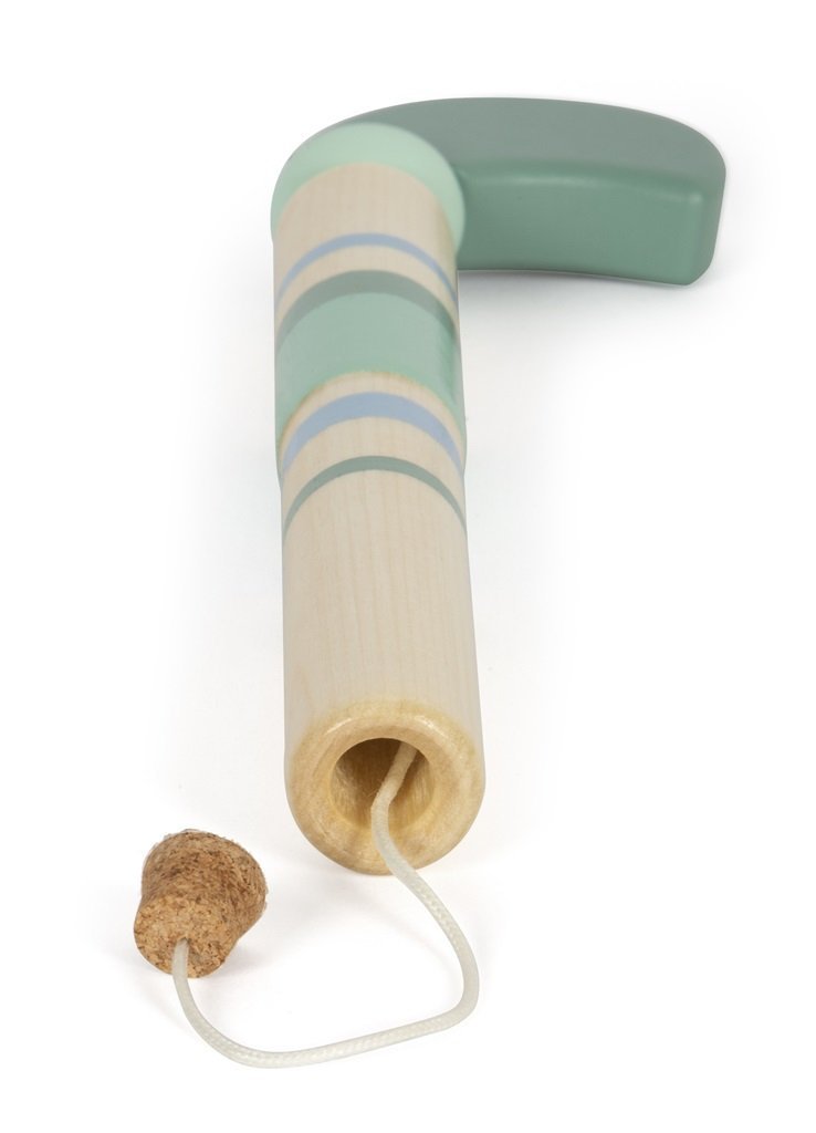 Tegni in streljaj! Ta zabavna, a varna pištola s pokrovčkom je izdelana iz trpežnega lesa v kombinaciji nežnih barv in naravnega videza lesa. Pločevinasta krogla je z vrvico pritrjena na cev pištole za ušesa, zato se ne bo nikoli izgubila in jo je mogoče večkrat uporabiti. Idealna igrača za vrt ali park, primerna pa je tudi za uporabo v zaprtih prostorih. Glavne značilnosti: za uporabo na vrtu, v parku in v zaprtih prostorihNarejen iz trpežnega lesa