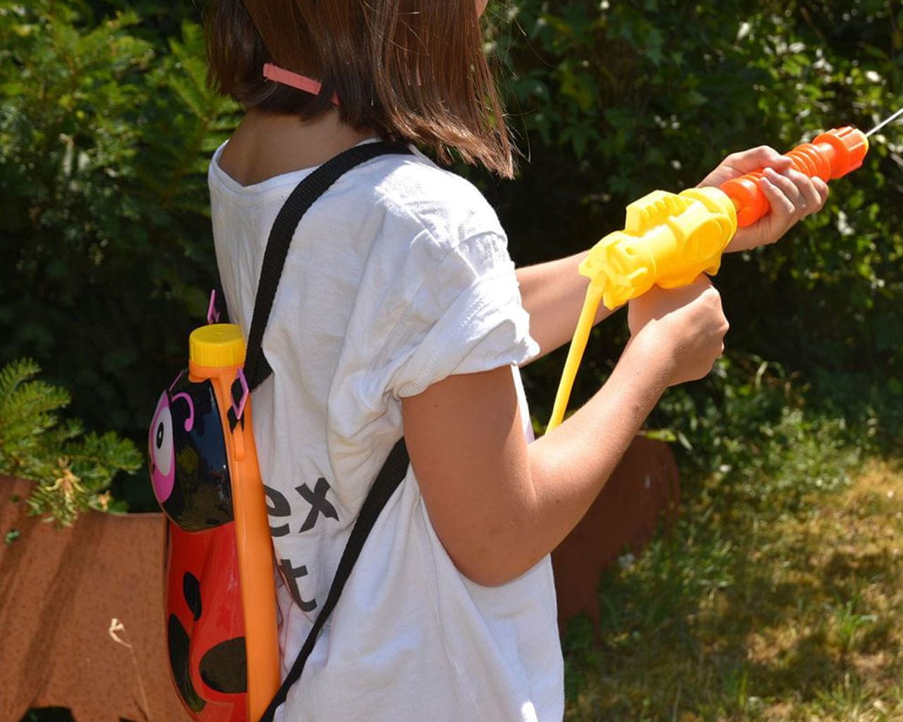 Vodna pištola primerna tako za punčk in fante. Z velikim rezervoarjem za vodo – 2,4 l. Celoten opis