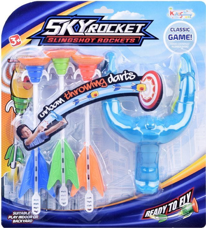 izboljšanje spretnosti merjenja in koordinacije gibov aktivno preživljanje časa z družino in prijatelji deli paketa: rog, 3 puščice iz mehkega materiala, ki zagotavlja varnost vseh udeležencev igre pračo sestavljata ergonomski ročaj in prilagodljiv pas, ki služi kot vodilo za puščice
