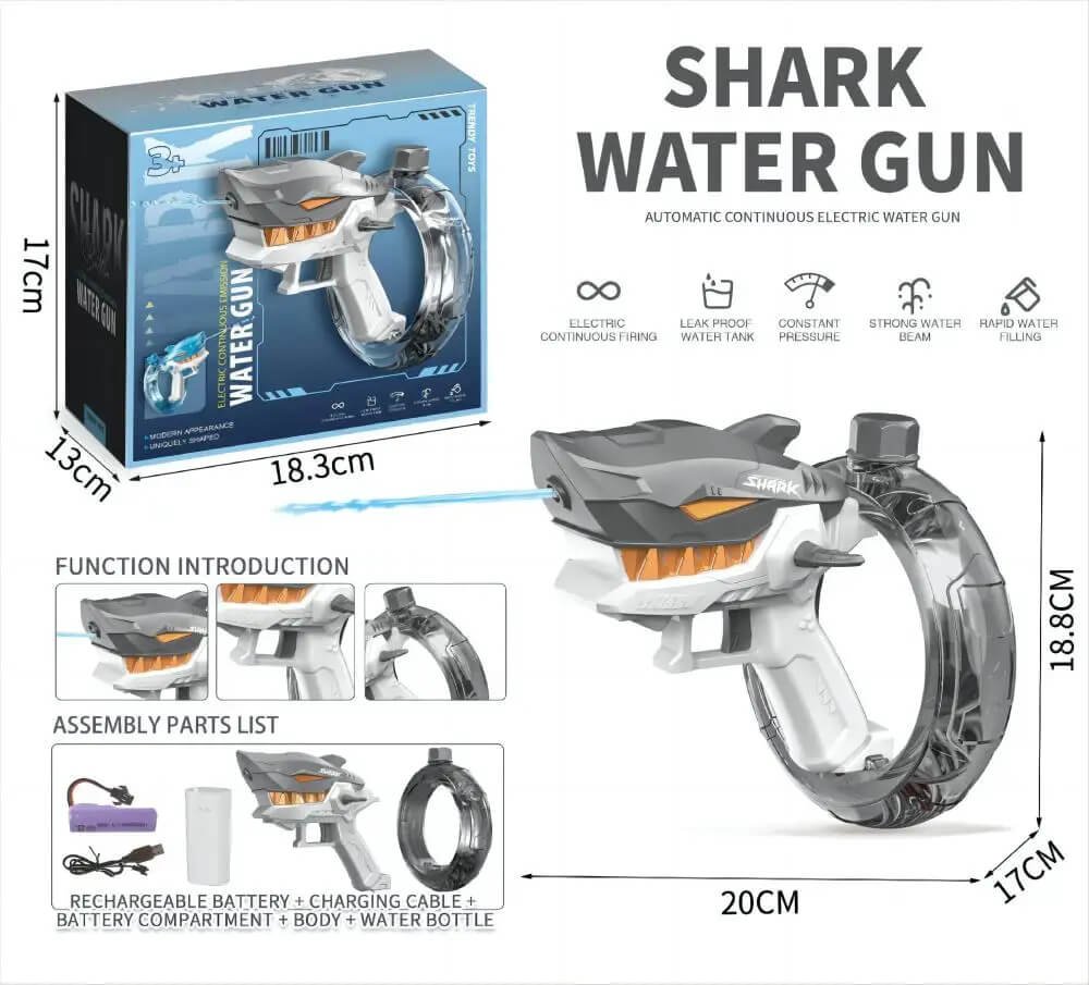 Zaključek: Električna vodna pištola Shark je nepogrešljiv pripomoček za vsak vodni boj ali poletno avanturo. Ponuja neskončno zabavo, enostavno upravljanje in varnost, zato je idealno darilo za otroke in odličen dodatek družinskim izletom na vodi. Ne zamudite priložnosti, da si poletja obogatite z doživetji, polnimi smeha in veselja – naročite električno vodno pištolo Shark še danes!