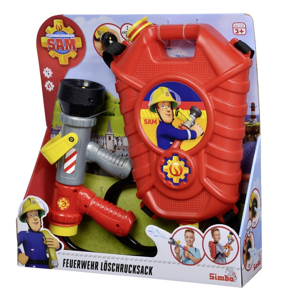 Gasilski komplet za gašenje požara v nahrbtniku z enim ali več pretoki vode z licenco Fireman Sam. Celoten opis