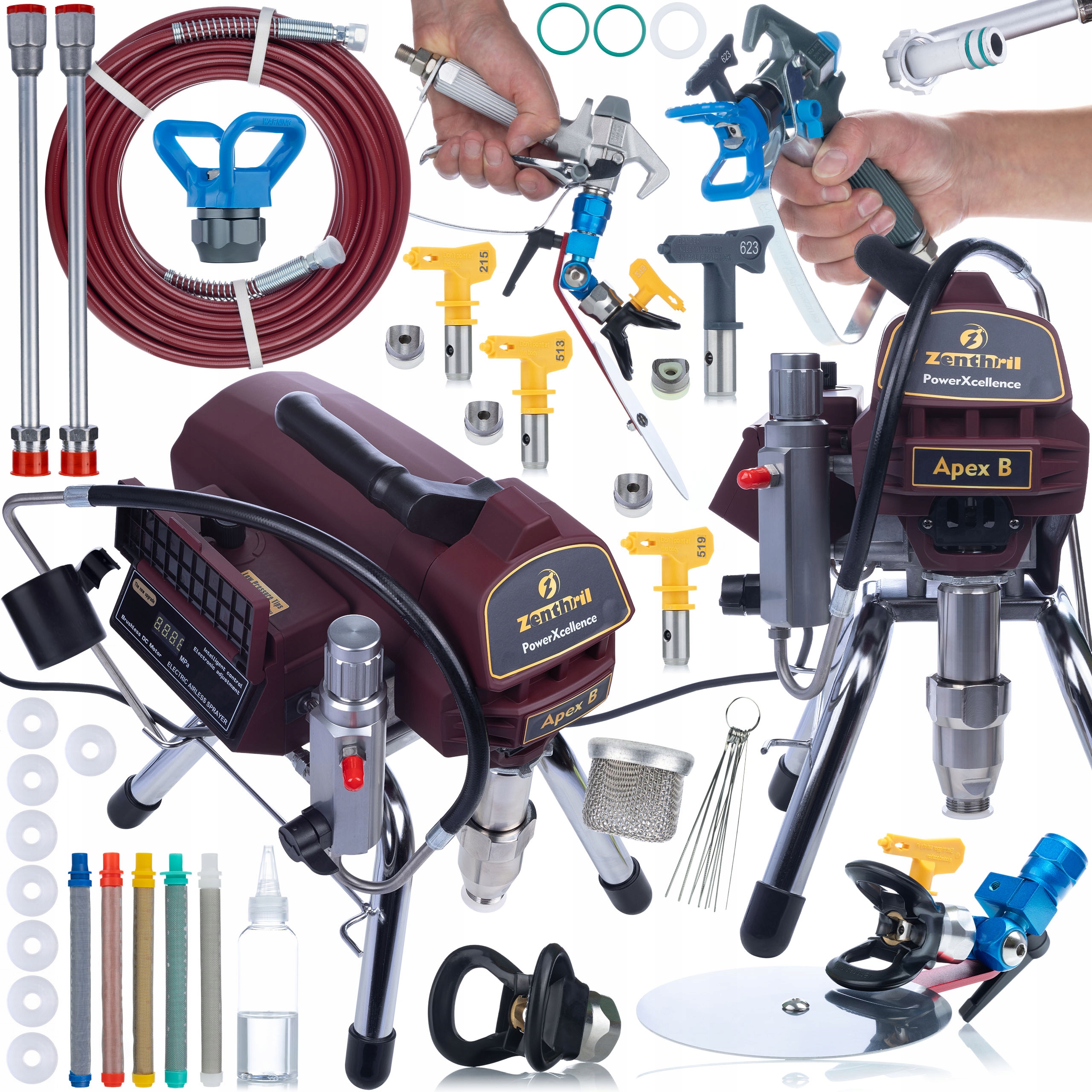 Agregat malarski Zenthril Apex B 2500W PowerXcellence z wielkim zestawem akcesoriów malarskich MEGA PACK