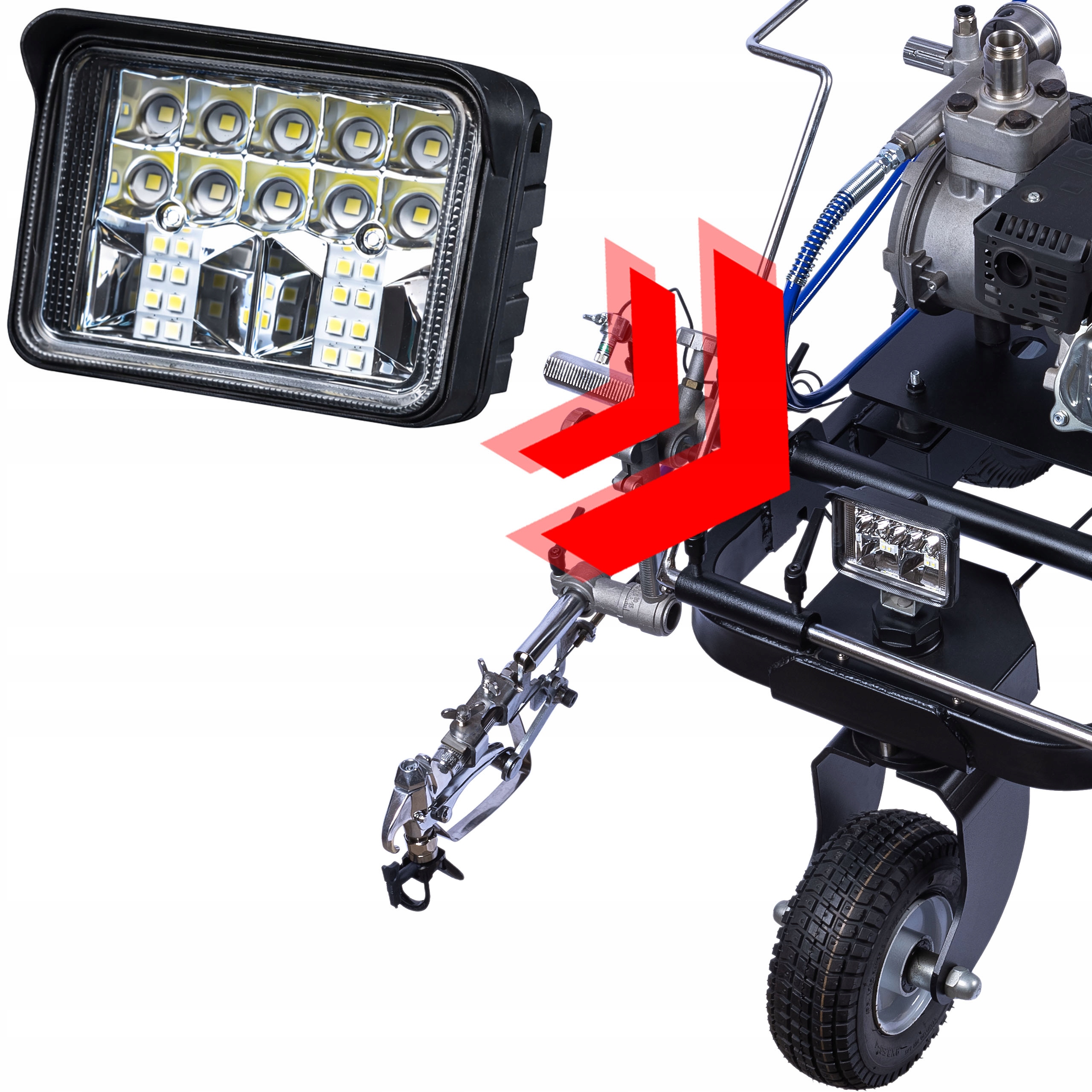 ✅ Lampa LED do malowarek Zenthril: Uniwersalne oświetlenie robocze montowane z przodu malowarki – poprawia widoczność obszaru pracy w każdych warunkach