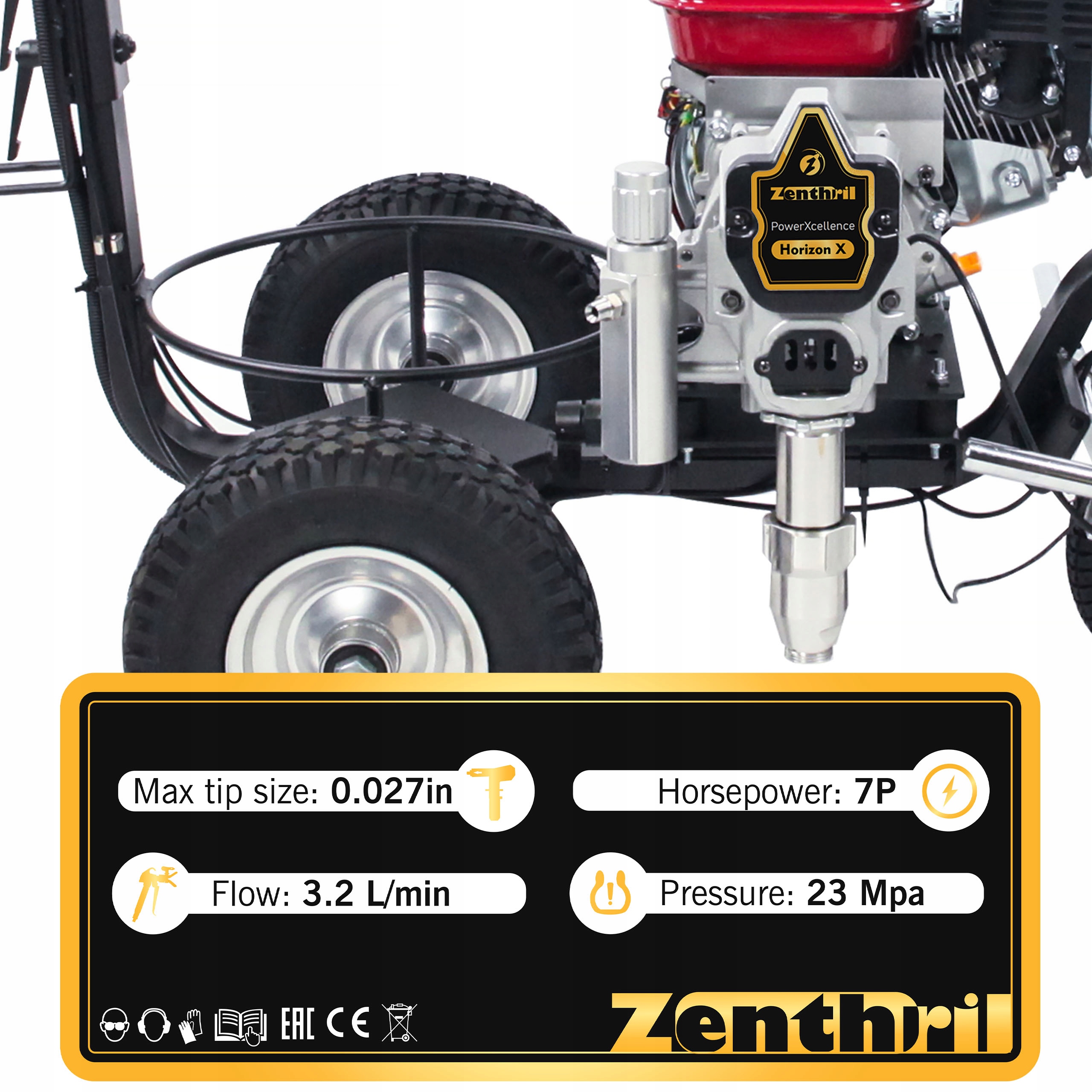 Zenthril PowerXcellence Horizon X – Spalinowa malowarka drogowa | 7P | 23 MPa | 0,027" | 3.2 L/min | Dysza 215 | Wąż 15 m | Do oznaczeń dróg, parkingów i hal