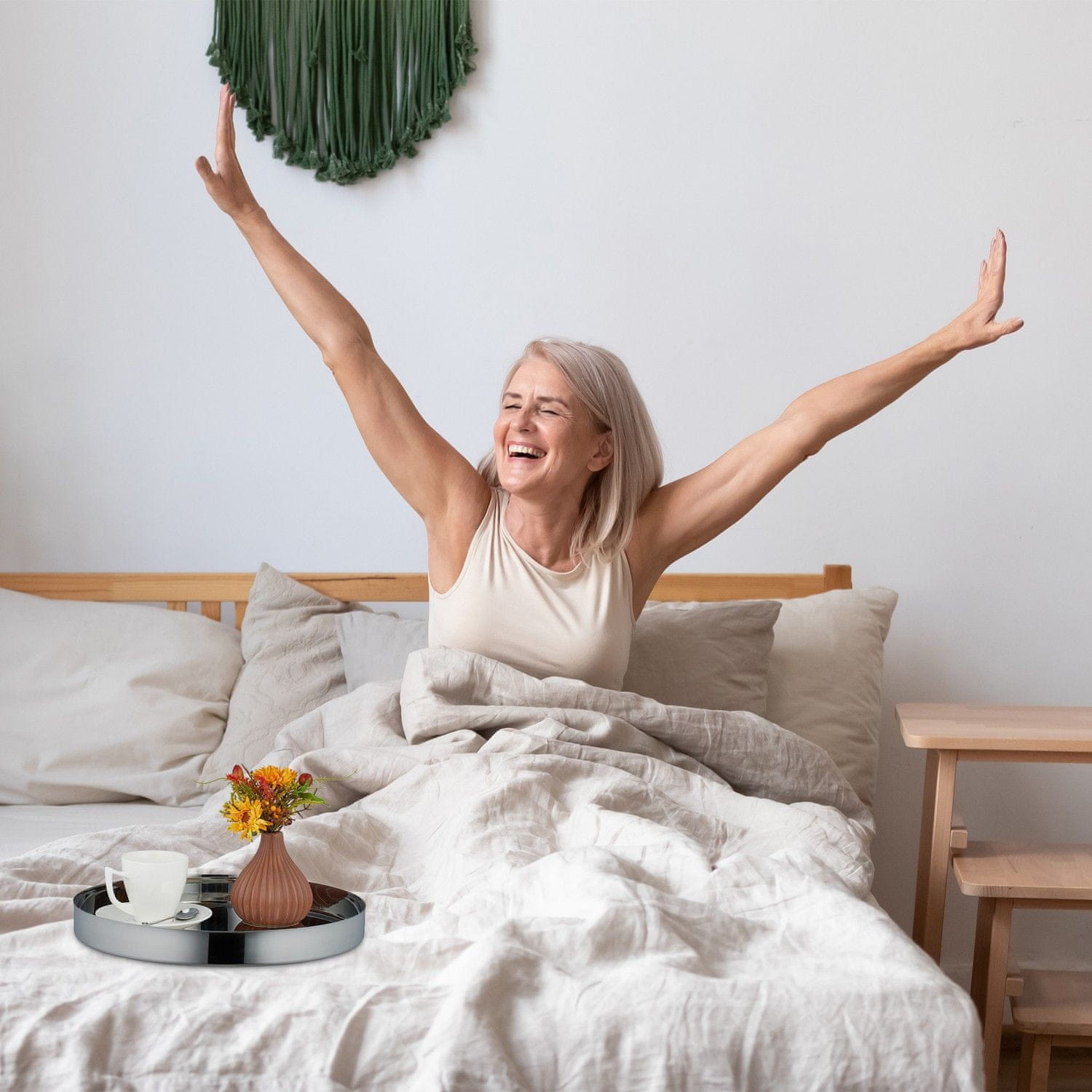 Izboljšajte svojo izkušnjo zajtrka v postelji s tem vsestranskim pladnjem za čaj iz nerjavečega jekla, ki ponuja stabilno in elegantno rešitev za postrežbo prigrizkov in pijač. Njegov dvignjen rob zagotavlja varen transport.