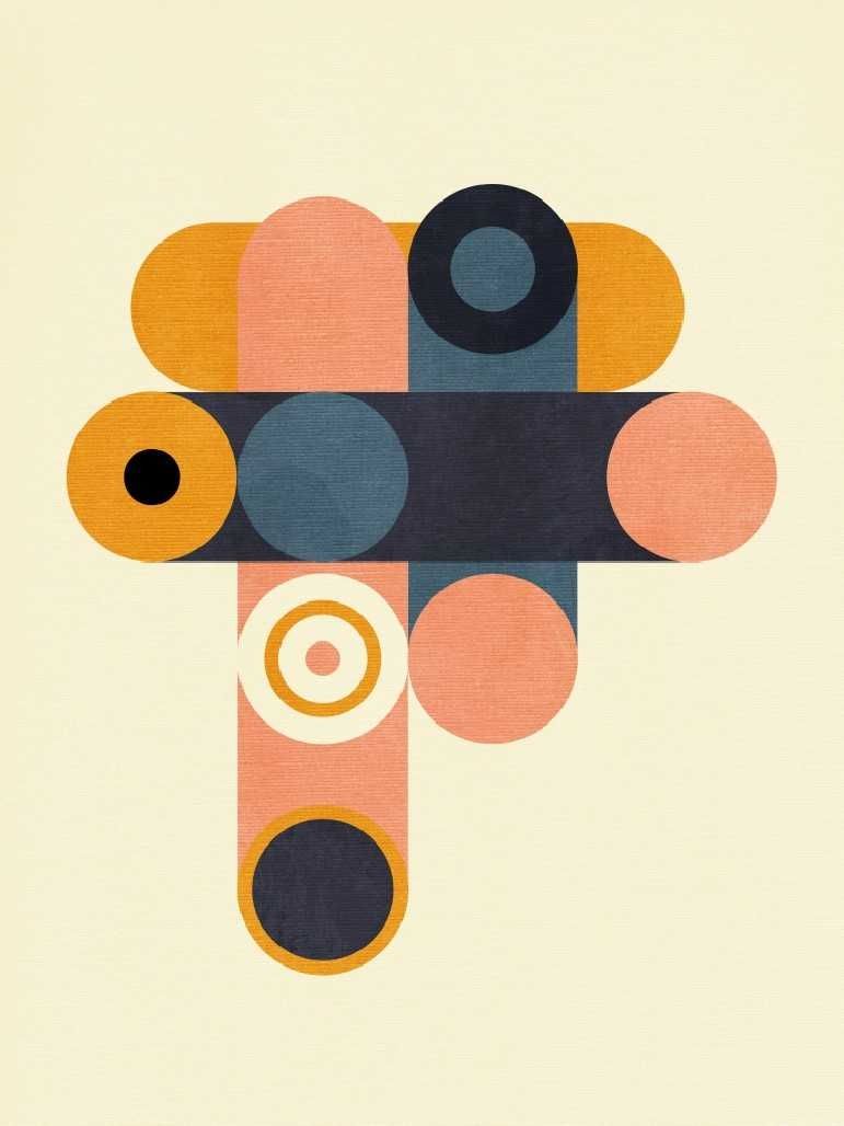 Rainbow Plus Shapes Blue Mustard8 – 50×70 cm Celoten opis