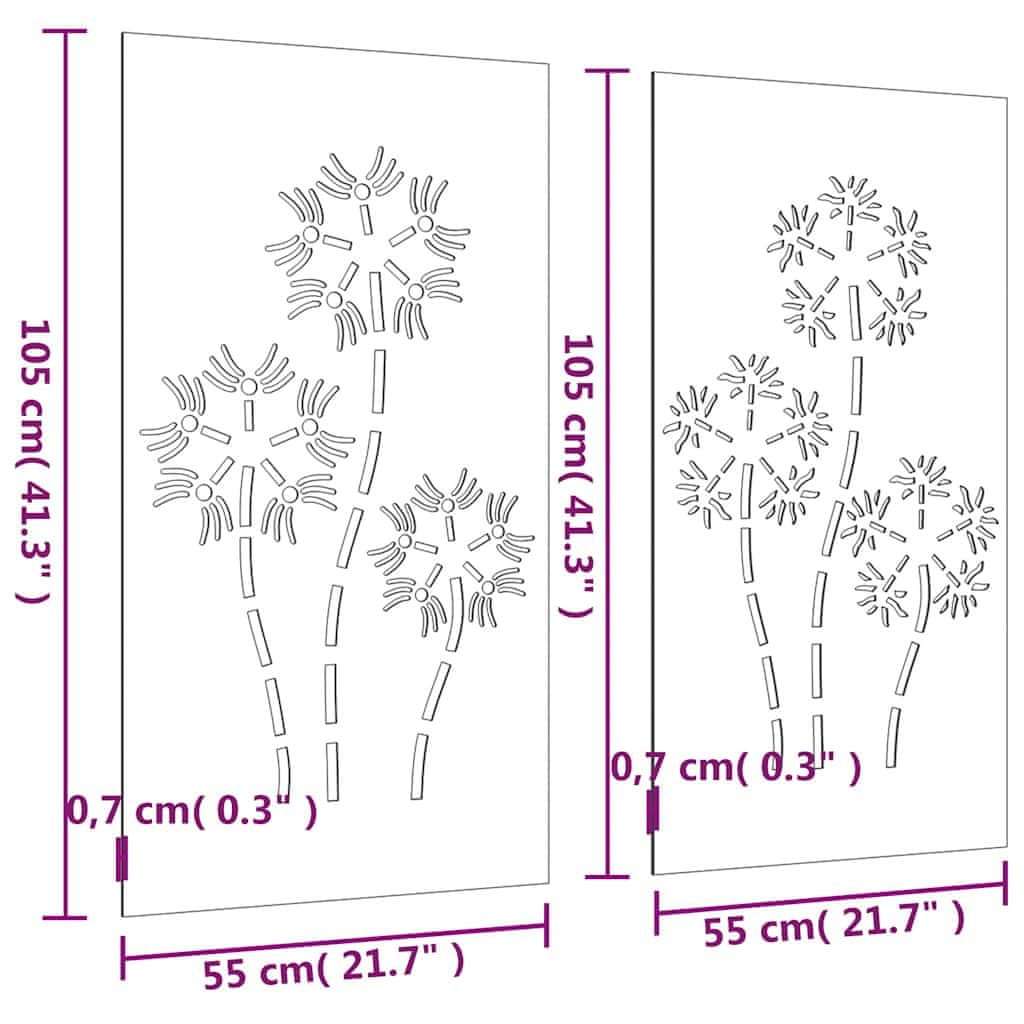 Vidaxl Vrtne stenske dekoracije 2 kosa 105x55 cm corten jeklo rože