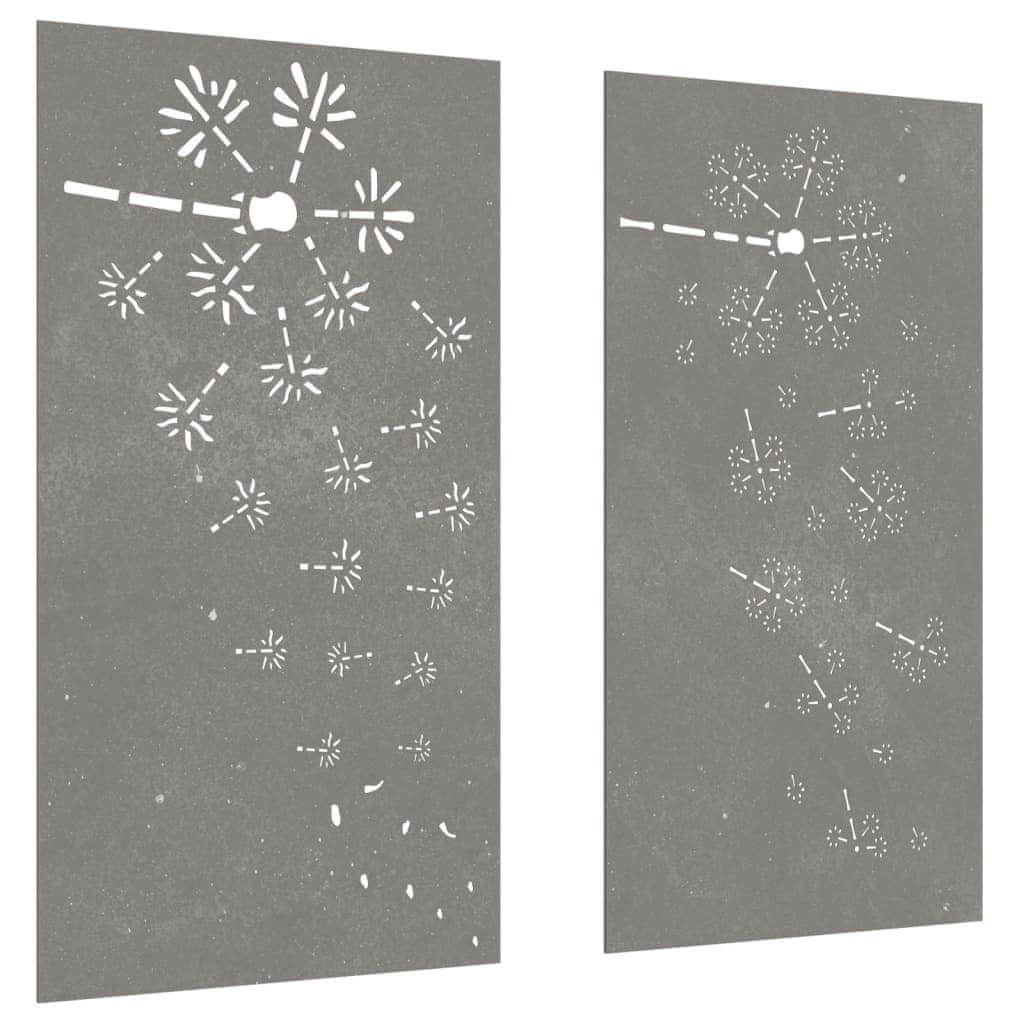 Vidaxl Vrtne stenske dekoracije 2 kosa 105x55 cm corten jeklo rože