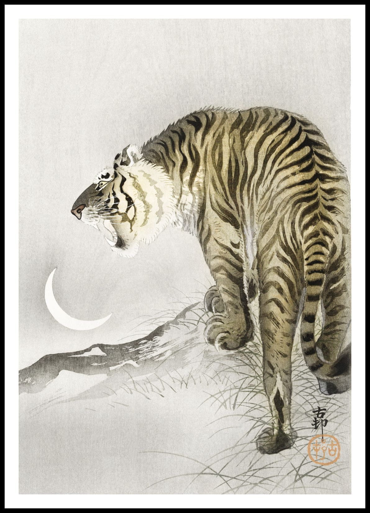 Zakito Posters Plakat 70x100 cm Rjoveči tiger, Koson Japonski Vintage za dnevno sobo