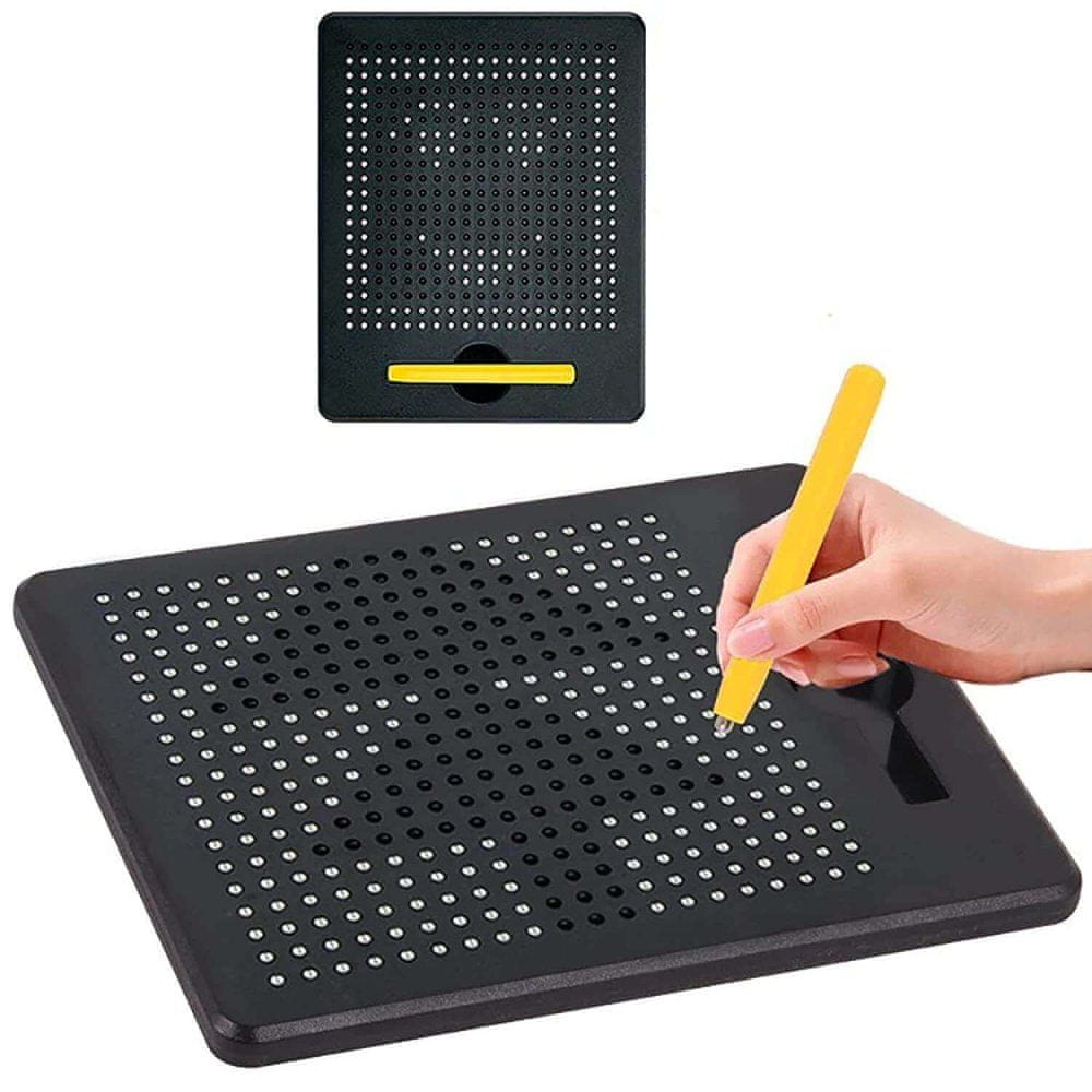 Magnetna risalna tabla je inovativna naprava, opremljena s 380 magnetnimi kroglicami, ki vašim otrokom omogočajo ustvarjanje osupljivih risb in vzorcev preprosto z uporabo magnetnega pisala. Z merami 18×22 cm je kot nalašč za male roke in enostaven za prenašanje, tako da lahko vaši otroci ustvarjajo kjerkoli in kadarkoli.