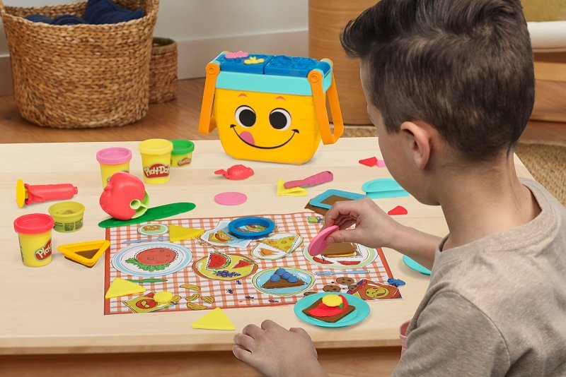 V dežju ali siju je piknik set Play-Doh za najmlajše popoln otroški piknik set za vsako priložnost! Vsebuje 12 začetnih orodij, 6 barv mase Play-Doh in piknik košarico za shranjevanje orodij. Ko otroci raziskujejo osnovne oblike, kot so kvadrati, krogi in trikotniki, lahko s pomočjo domišljije te oblike zložijo v sendviče Play-Doh. Predstavljajte si otroške piknik igre z zabavnimi prigrizki in žuželkami na strani igralne podloge z videzom odeje za piknik ali pa podlogo obrnite in otroke vključite v zabavo z urejanjem oblik v različnem vrstnem redu. Ne glede na to, ali gre za prvi set Play-Doh ali darilo za otroke, stare od 3 let naprej, naj odkrijejo veselje do igrač Play-Doh!