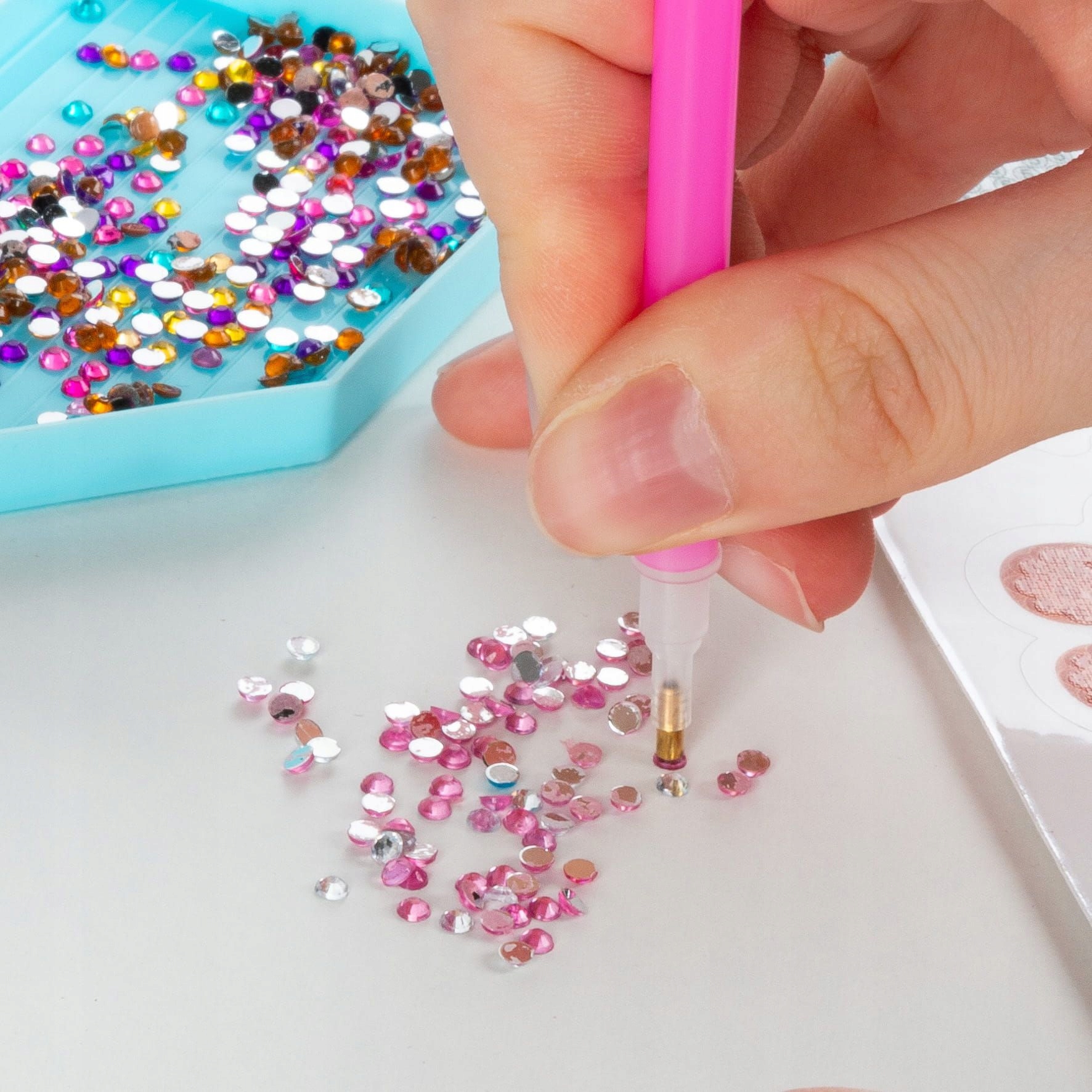 • Za okraševanje uporabite 500 sijočih kristalov v 9 odtenkih, skupaj s potrebnimi dodatki: aplikator, pladenj in vosek.
