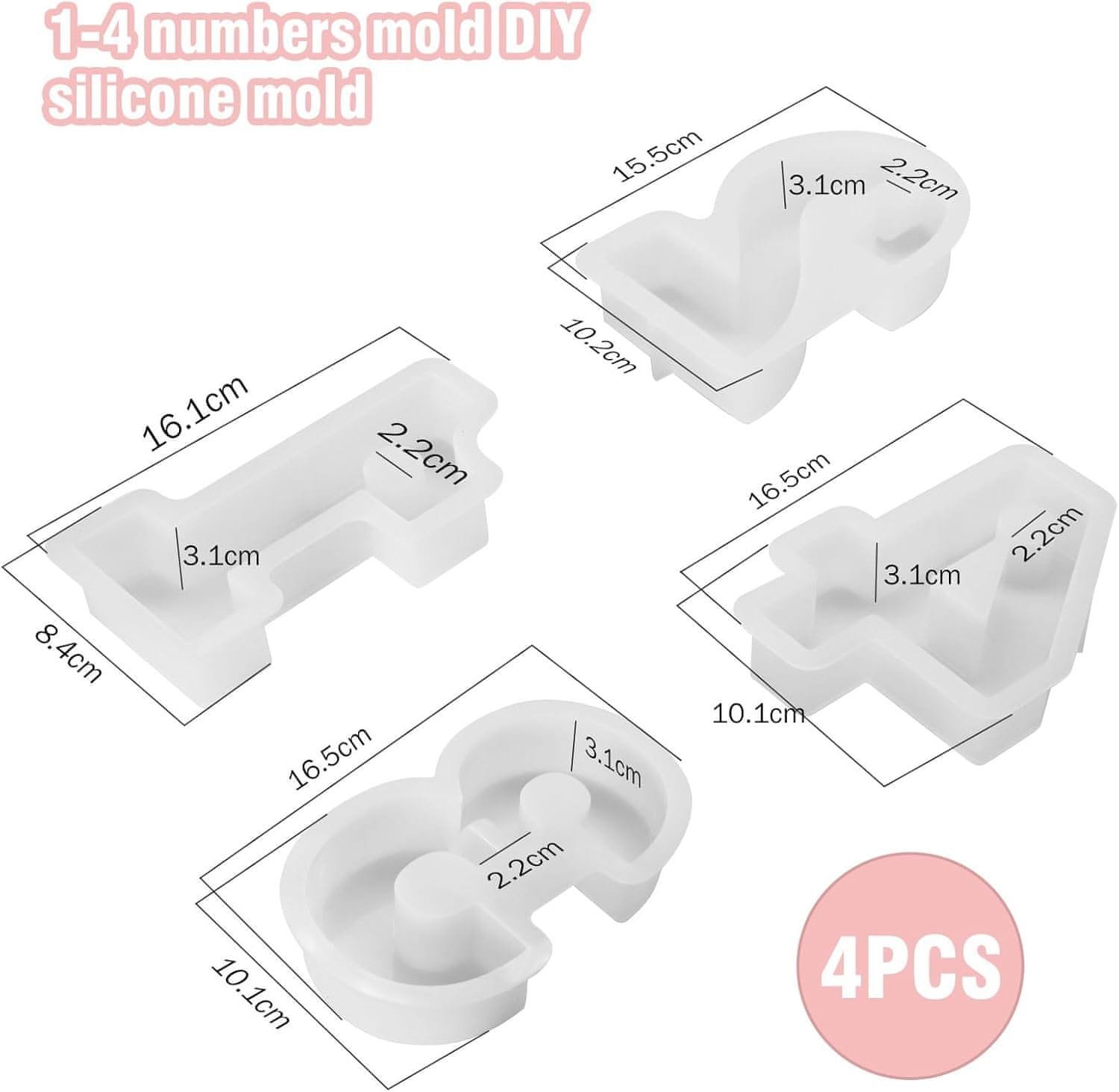 • Numerično načrtovanje: Kalupi za svečnike so oblikovani s številkami 1–4. Med proizvodnjo lahko dodate bleščice, kamenčke, suho cvetje in druge okraske, da ustvarite osupljive svečnike z uporabo naših smolnih kalupov za svečnike. Ti silikonski kalupi so primerni za vlivanje iz epoksidne smole in vam omogočajo preprosto ustvarjanje edinstvenih in elegantnih dizajnov sveč.