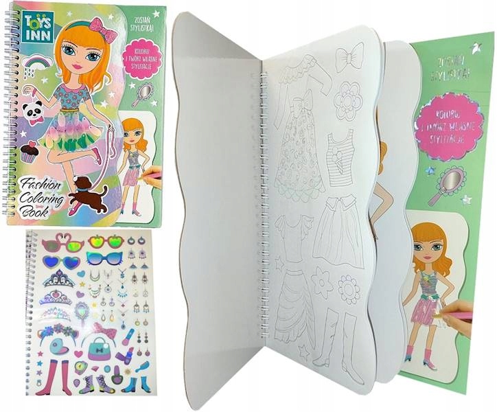 Pobarvanka je bogat komplet oblačil in dodatkov, ki bo vsako mlado modno navdušenko ohranil ustvarjalno. Vsi listi so spiralno vezani, zaradi česar je komplet enostaven za uporabo tudi med potovanjem.