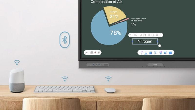 Razširite povezljivost zaslona – pridobite povezljivost Wi-Fi in Bluetooth za povezavo zaslona s spletom ali napravami Bluetooth, kot so zvočniki in mikrofoni.