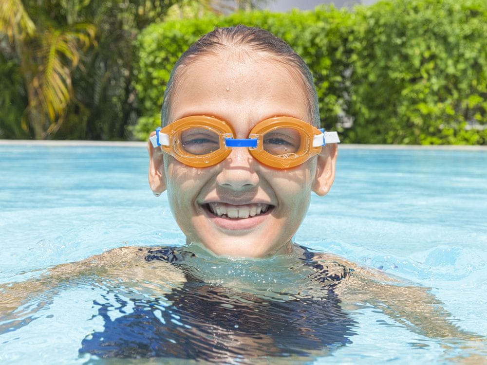 Očala Bestway® Aqua Burst vam bodo zagotovo prišla prav pri prvih lekcijah plavanja. Bili so ustvarjeni z mislijo na udobje in varnost najmlajših otrok med aktivnostmi v bazenu. Stekla očal so izdelana iz trpežnega polikarbonatnega materiala, zato so odporna proti udarcem in prenesejo tudi udarce otrok, ne glede na to, ali skačejo, se potapljajo ali škropijo. Očala poleg tega nudijo zaščito pred UV sevanjem in tako ščitijo oči vašega otroka pred ostrimi sončnimi žarki med potapljanjem in snorklanjem v vodi. Nastavljiv nosni mostiček in silikonski trak omogočata individualno prilagajanje očal glavi uporabnika. Očala so bila namenjena otrokom od 7 let.