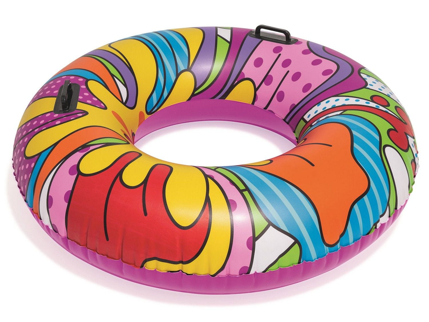 Napihljiv plavalni obroč Bestway POP ART prinaša barvit in zabaven način za sprostitev ob morju ali jezeru. Velike dimenzije omogočajo udobno plavanje in sprostitev, edinstvena Pop Art grafika pa vas bo izpostavila iz množice.