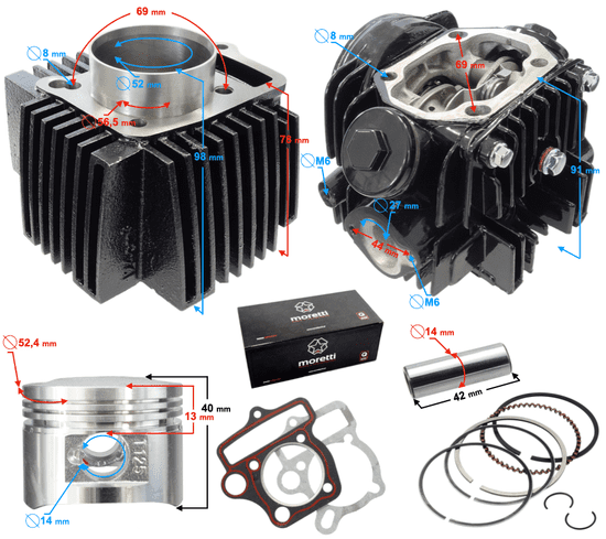Moretti cilinder in glava za moped 4T 125cc 154FMH Celoten opis