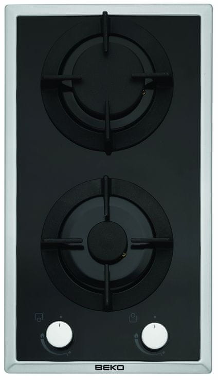 Plinska domino kuhalna plošča Beko HDMS32220FX ima dva plinska gorilnika. Plošča ima mehansko upravljanje in elektronski vžig.